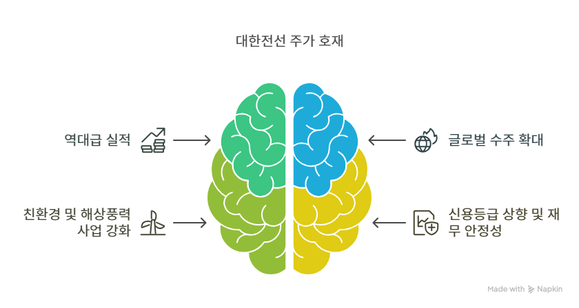 - 최근 기사에 따르면, 대한전선은 2025년부터 해저 케이블과 초고압직류송전(HVDC) 케이블 매출이 본격화되며 수익성 개선이 기대된다. 유안타증권은 2025년 매출 3조 5,825억 원, 영업이익 1,308억 원을 예상하며, 배당 정책 도입 가능성을 언급했다. 그러나 구체적인 배당 계획은 2025년 이사회 결정에 따라 확정될 예정이다.