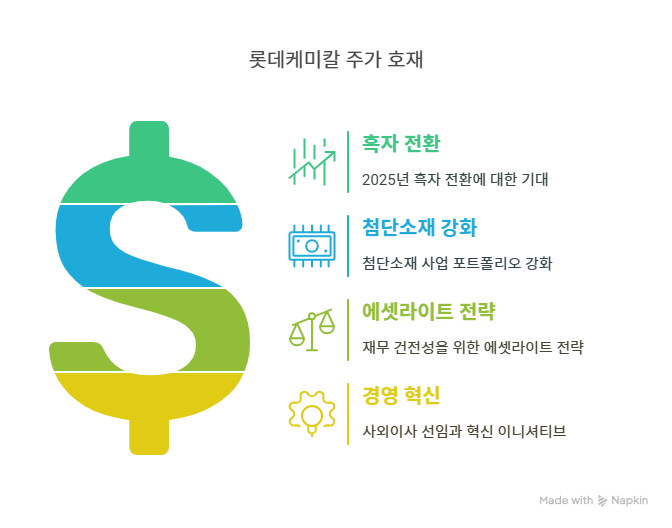 롯데케미칼은 2025년 하반기부터 글로벌 석유화학 업황 개선으로 흑자 전환이 기대된다. 2024년 영업손실 8,948억 원을 기록했으나, 원료가 및 운임비 하락, 환율 강세, 경기부양 정책으로 수요가 회복될 전망이다. 특히, 북미 OEM 신규 고객사 공급과 주요 고객사의 가동률 회복으로 롯데에너지머티리얼즈의 판매량이 증가할 것으로 예상된다. 시장에서는 2025년 연간 영업이익 1,000억 원 이상을 전망하며, 4년 만의 흑자 가능성을 언급한다. 롯데케미칼은 고부가 스페셜티 제품 확대와 비핵심 자산 매각을 통해 수익성을 개선하고 있다. 이는 재무 안정성과 주가 회복에 긍정적인 영향을 미칠 전망이다.