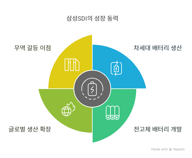 - 삼성SDI는 친환경 에너지와 첨단 소재를 중심으로 사업을 운영하는 글로벌 기업이다.
