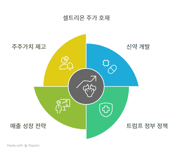 셀트리온은 미국 트럼프 2기 정부의 의료정책을 회사 주력 사업의 호재로 보고 있다. 트럼프 2기 정부에서 과거 임기 당시 정책들을 계승-발전시키는 방향으로 의료정책을 추진할 것으로 기대되는 만큼, 셀트리온의 주요 사업인 바이오시밀러와 위탁개발생산(CDMO) 사업 기회가 확대될 것으로 전망한다. 특히 바이오시밀러 처방 확대 정책과 자국 의약품 생산 강화 정책은 셀트리온의 미국 시장 진출에 긍정적 영향을 미칠 것으로 예상된다. 셀트리온은 트럼프 행정부의 관세 부과 가능성에 대비해 원료의약품 수출 확대와 현지 생산기지 확보 등 3단계 대응 전략을 마련함으로써 민첩하게 대응하고 있다.