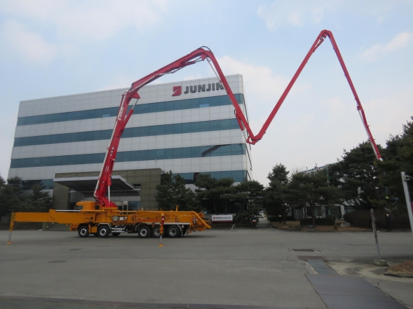 - 콘크리트 펌프카는 고층빌딩, 원전, 교량, 공장 등 건설 현장에서 레미콘을 원하는 위치로 이송하는 필수 장비로, JJ-M5517, JJ-M5015, JX-M3615 등 다양한 모델을 보유한다.