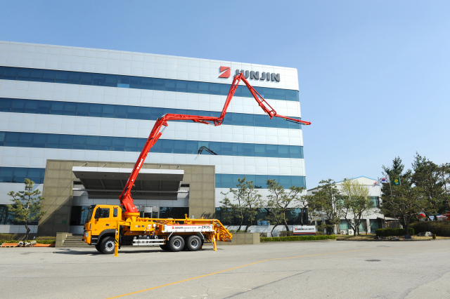 - 콘크리트 펌프카는 고층빌딩, 원전, 교량, 공장 등 건설 현장에서 레미콘을 원하는 위치로 이송하는 필수 장비로, JJ-M5517, JJ-M5015, JX-M3615 등 다양한 모델을 보유한다.