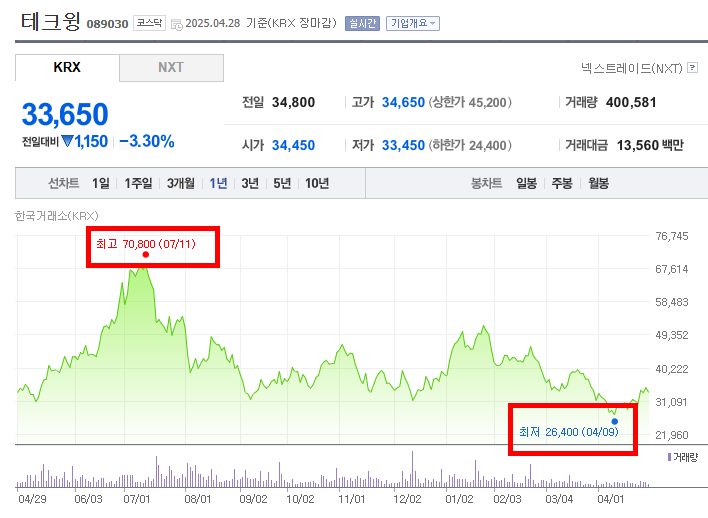 👇👇테크윙 실시 주가 변동은 아래 링크를 통해 확인할 수 있습니다.👇👇