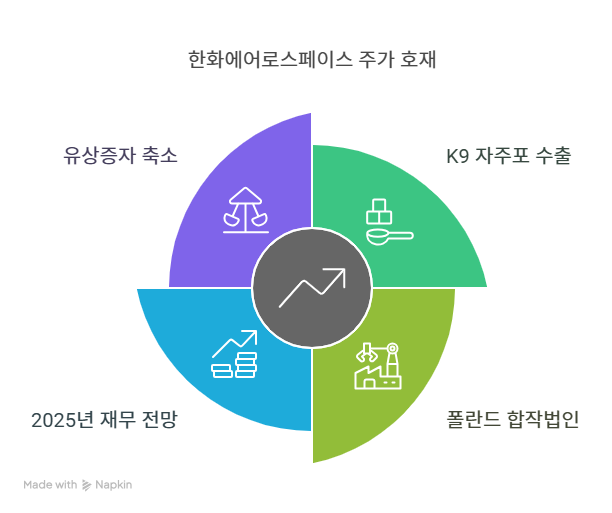 - 한화에어로스페이스는 2024년 매출 10조 8600억 원(전년 대비 33.8% 증가), 영업이익 1조 7400억 원(162.4% 증가)을 기록하며 사상 최대 실적을 달성했다. K9 자주포, 천무 다연장로켓 등 방산 수출 증가와 한화오션 연결 효과가 주요 요인이다. 배당성향은 약 4.5%로 낮은 편이며, 회사는 유상증자(2조 3000억 원 규모)와 자사주 매입·소각을 통해 주주환원정책을 강화하고 있다.