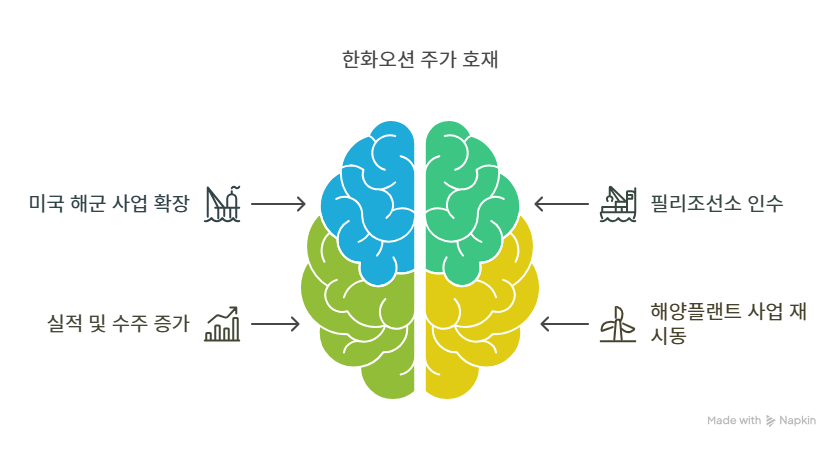 - 한화오션은 글로벌 조선소와의 경쟁에서 초격차 기술과 친환경 솔루션을 바탕으로 안정적 수익을 창출하며, 해상풍력과 방산 시장 확대를 통해 추가 수익원을 확보하고 있다.