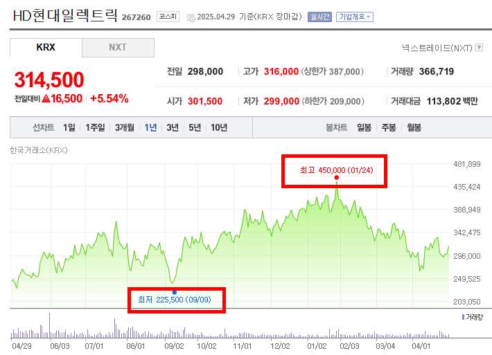 현대일렉트릭 주가