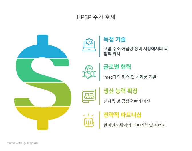 HPSP는 한미반도체와의 전략적 파트너십을 통해 안정적인 성장 기반을 마련했다. 2022년 더벨 기사에 따르면, 한미반도체는 HPSP 지분 12.5%를 375억원에 인수하며 2대 주주로 올라섰다. 이는 HPSP의 2022년 코스닥 상장에 긍정적인 영향을 미쳤으며, 한미반도체의 후공정 기술과 HPSP의 전공정 기술이 시너지를 창출할 가능성을 높인다. 한미반도체는 글로벌 시장 점유율 1위의 비전 플레이스먼트와 EMI 실드 장비를 보유하며, HPSP의 고객 네트워크 확대를 지원한다. 이 파트너십은 기술 협력과 매출 다변화를 촉진하며, 장기적인 기업 가치 상승에 기여하는 호재다.