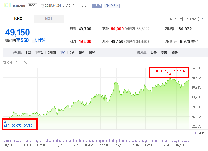 👇👇KT 실시가 주가 변동은 아래 링크를 통해 확인할 수 있습니다.👇👇