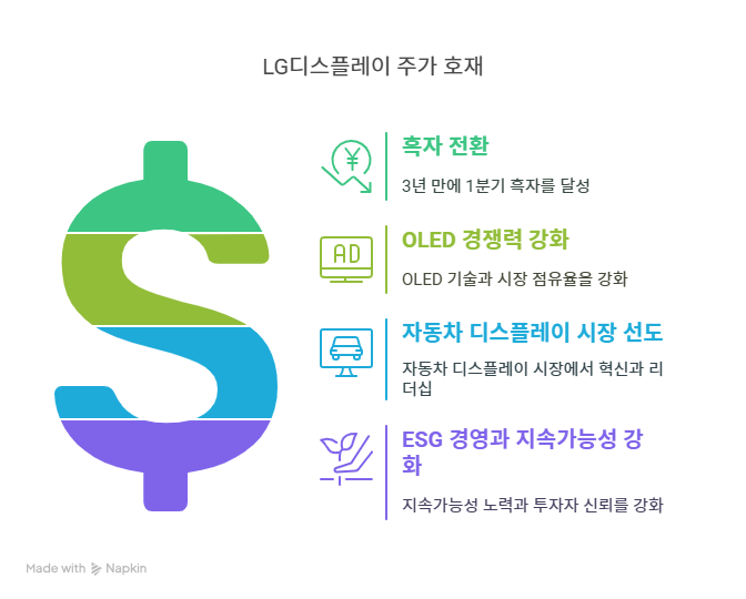 LG디스플레이는 2025년 1분기 영업이익 383억 원을 기록하며 3년 만에 1분기 흑자를 달성했다. ChosunBiz에 따르면, 이는 글로벌 관세 전쟁 우려로 인한 부품 사재기 효과와 OLED 중심 사업 구조 강화의 결과다. 2024년 4분기 매출은 7조 8,330억 원으로 전년 동기 대비 6% 증가했으며, 연간 매출은 26조 6,000억 원으로 25% 성장했다. OLED 제품 비중이 55%로 7%포인트 상승하며 수익성을 개선했다. 비용 절감과 운영 효율성 증대도 흑자 전환에 기여했다. 이는 단기 실적 안정성과 투자자 신뢰를 높이며, 주가 상승의 동력이 된다。